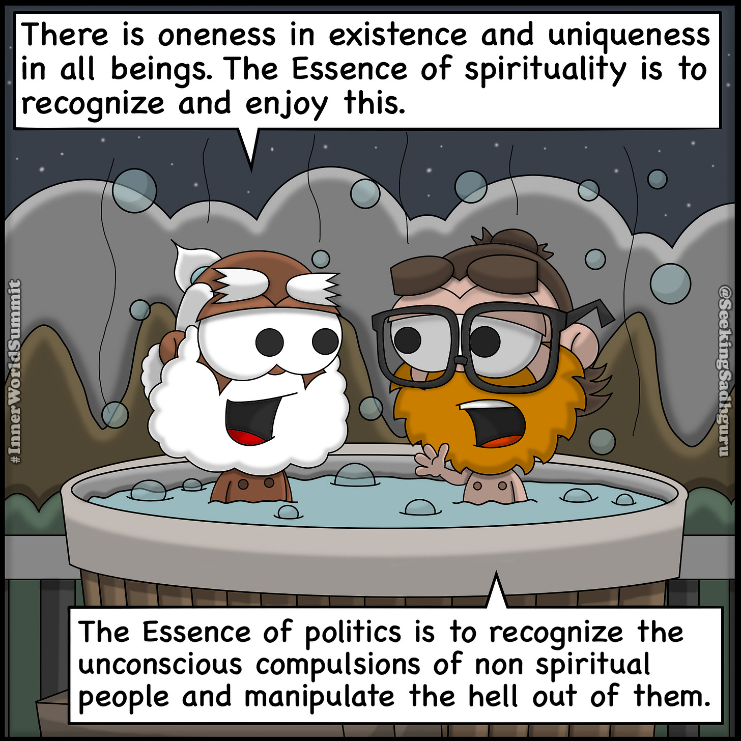 Hot Tub Yoga MachineAnother shot at politics? Yes. But if you become spiritual, conscious, not reactive, you can't be manipulated. If you can't be manipulated all their power dissolves. Yoga is the key to liberation. Seeking SadhguruJun 02, 2025SharePreviousNext