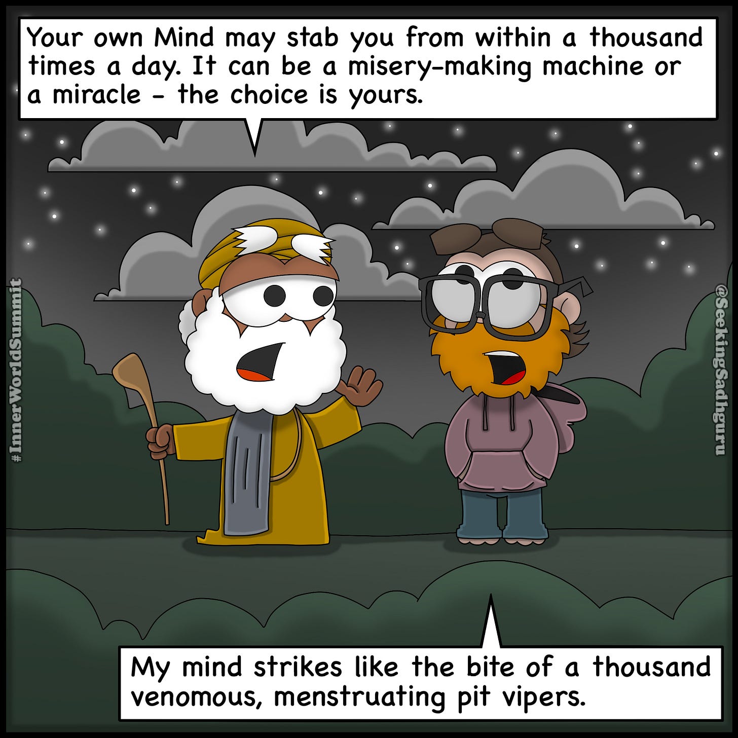 Misery-Making MachineNo offense to any menstruating pit vipers out there, or you know, women. p.s. I'm fully aware snakes don't menstruate. Seeking SadhguruNov 29, 2025SharePreviousNext
