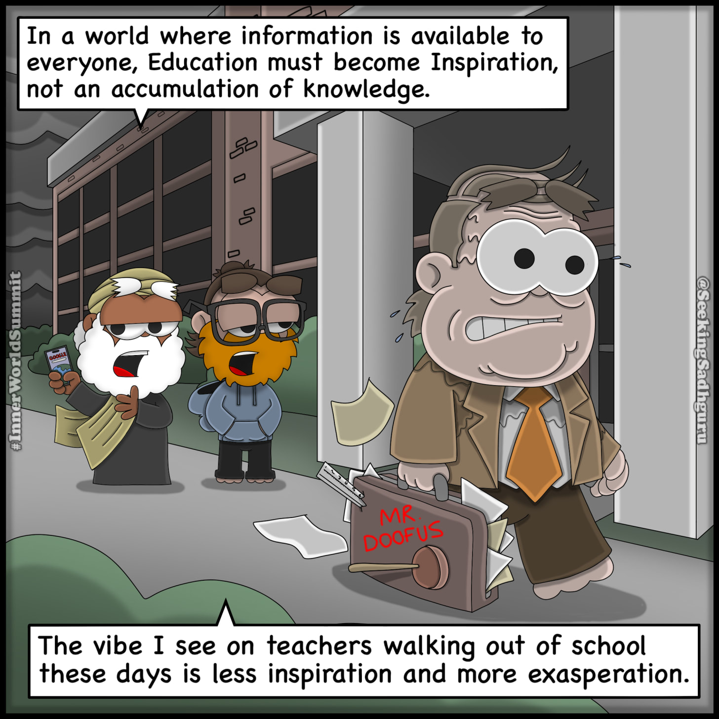 Mr. DoofusWe homeschool, and it's tough. I'd love for my kids to be with their friends. But it'll take teachers revolting against the current system to get anything done. And they all fear losing their jobs. Seeking SadhguruFeb 24, 2026SharePreviousNext